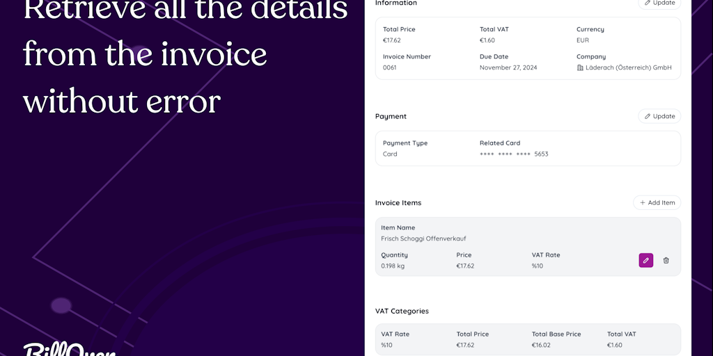 Optimize your invoices, receipts, and documents with Billover’s AI-powered OCR. Reduce errors and save time with fast, accurate data capture.