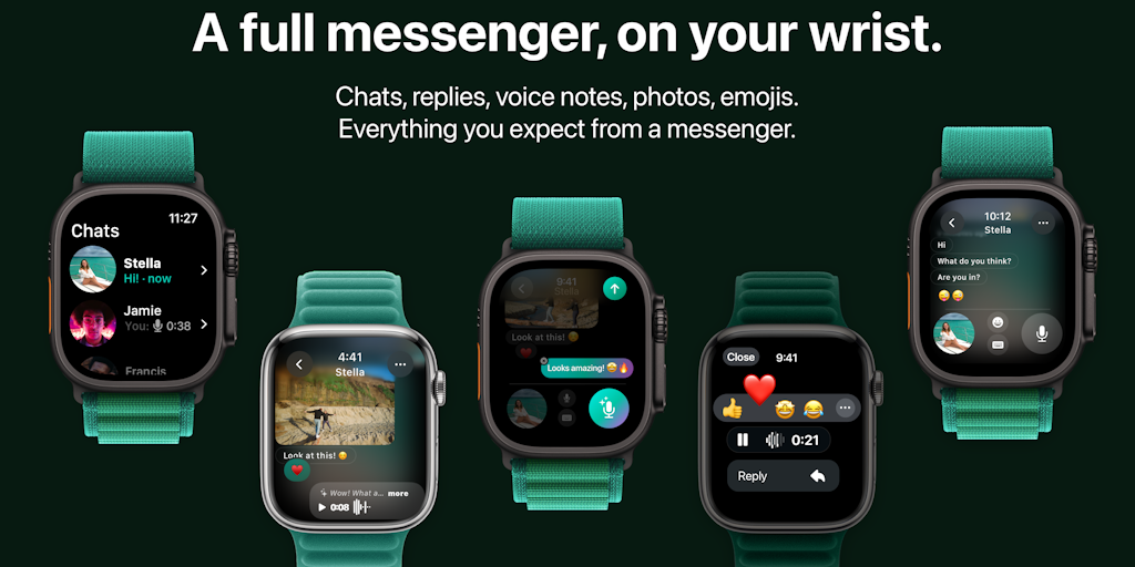Blaze Messenger lets you message on WhatsApp, iMessage & more - just by talking to your watch. It learns your unique tone and style, rewrites your voice into perfect replies and works phone-free acros