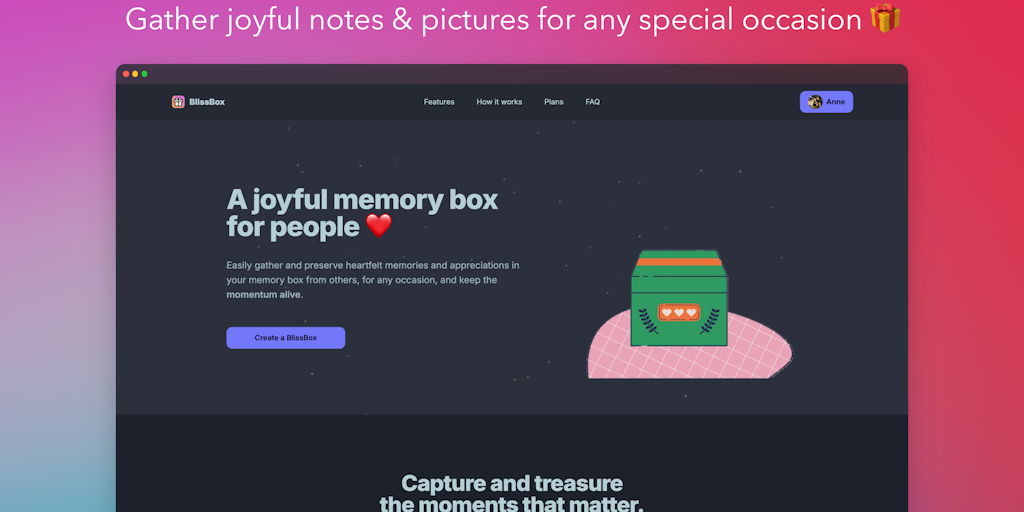 The ultimate digital memory box that collects messages and curates them into a beautiful keepsake and guestbook. Let people add notes, thoughts and memories with instant pictures ⚡️