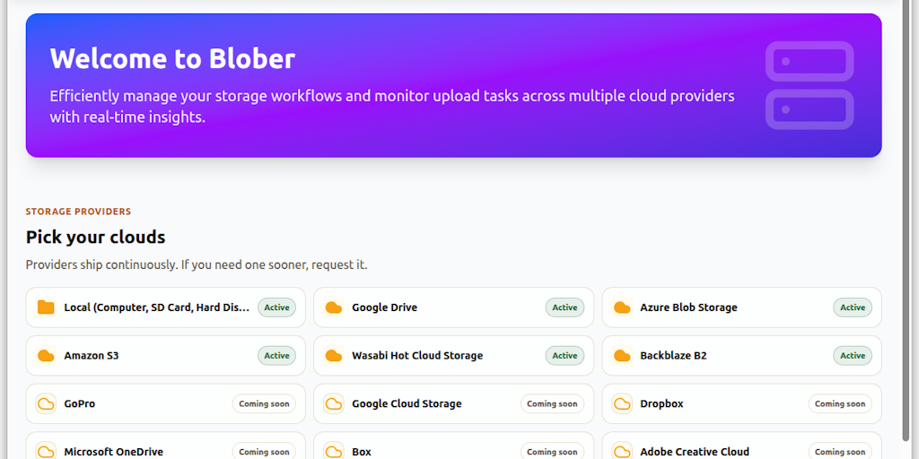 Manage blobs, files and folders across different storage providers. Blober a local-first workflow engine designed to turn "data graveyards" into organized archives.