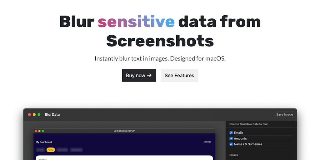 Automatically protect sensitive information in your screenshots and PDFs. BlurData detects and blurs emails, names, amounts, and personal data instantly on your Mac. Process multiple files, customize