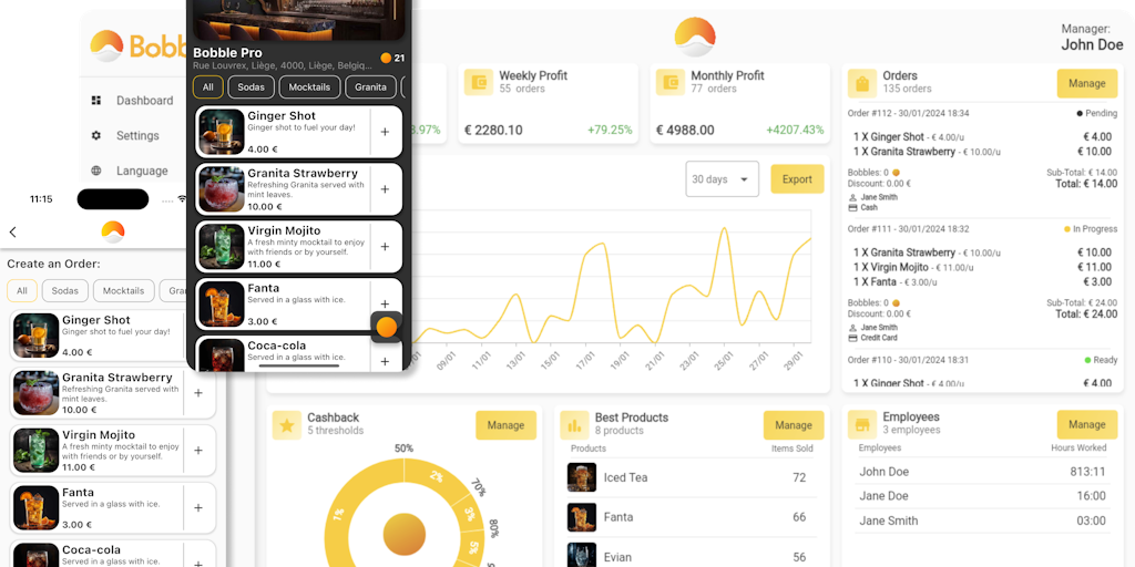 BobblePro is an advanced, time-saving platform offering a digital dashboard that empowers managers to oversee their entire business from a single screen. From managing employees to tracking sales, it’