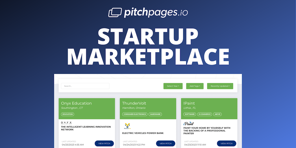 PitchPages Startup Marketplace is a simple community made to connect Founders with Investors and/or other resources. We made it easy to search for new startups, and build custom pitches in minutes.
