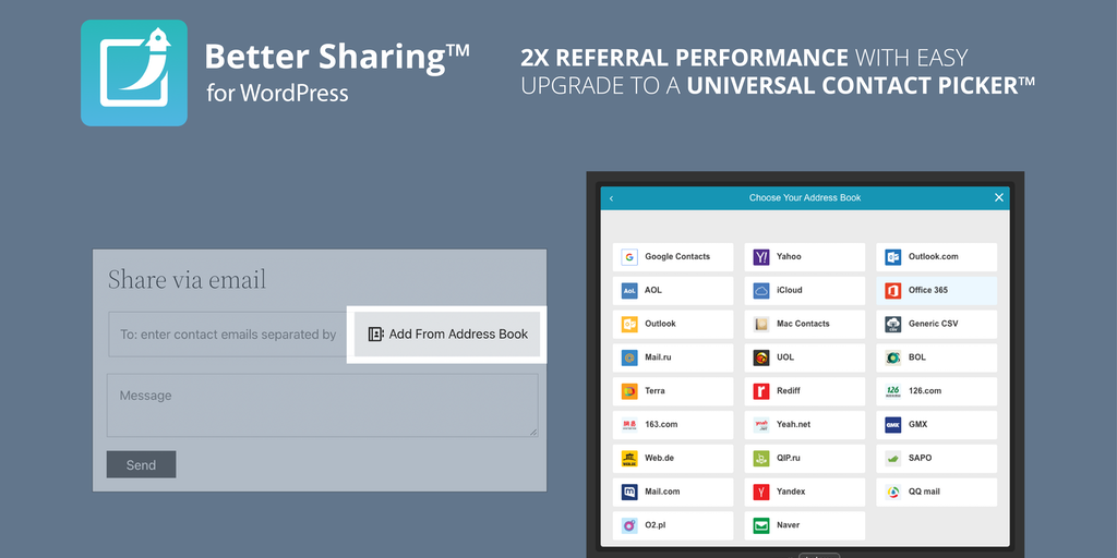Enable sharing via email, via social media, or via copy-pasting a custom hyperlink of your choice – by equipping your WordPress website with a powerful sharing interface that promotes word of mouth.