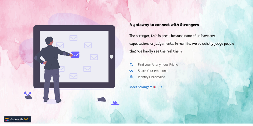 No one in this world is alone! Through 'With strangers', find your companion to give/get help to deal with your emotional problems.
