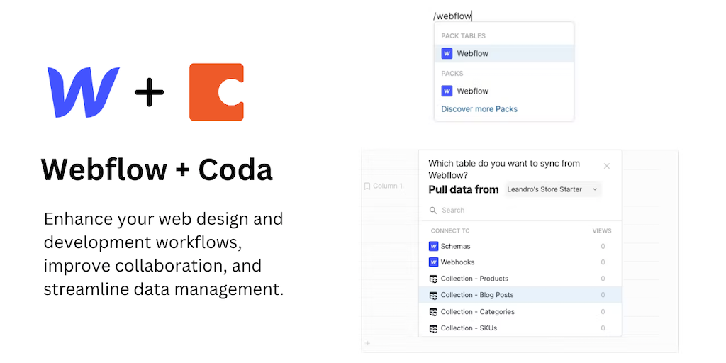 Webflow Pack for Coda - Webflow collections and e-commerce data in sync with Coda | Product Hunt