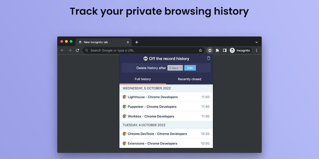 Off The Record History 2.0 - Access your incognito mode private browsing history | Product Hunt