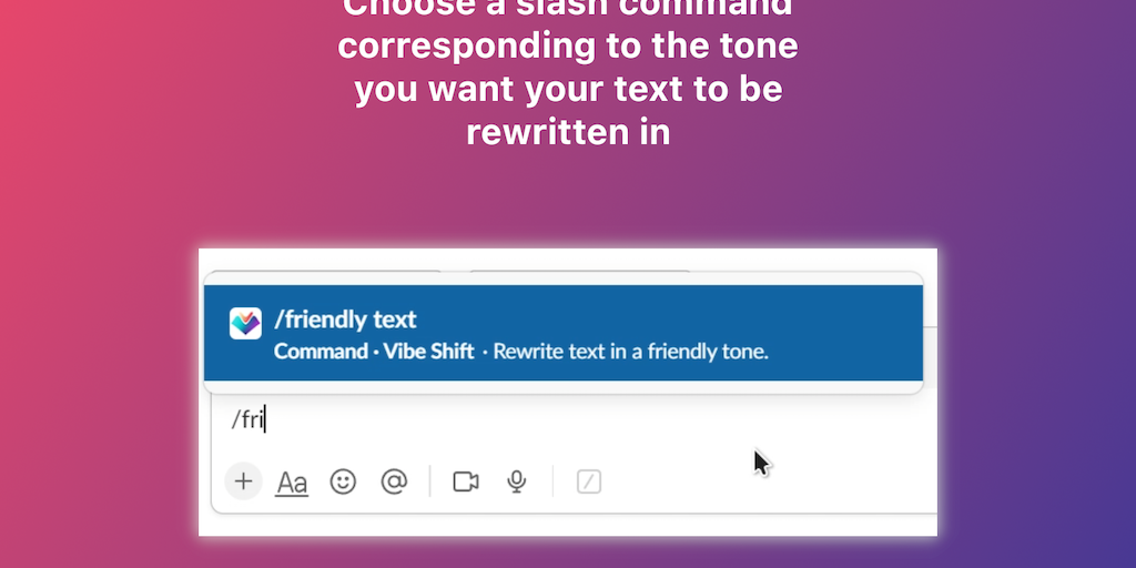 Vibe Shift is your Slack communication companion, ensuring your messages resonate the right way, every time. Whether you need to be casual, professional, direct, friendly, or more, Vibe Shift effortle