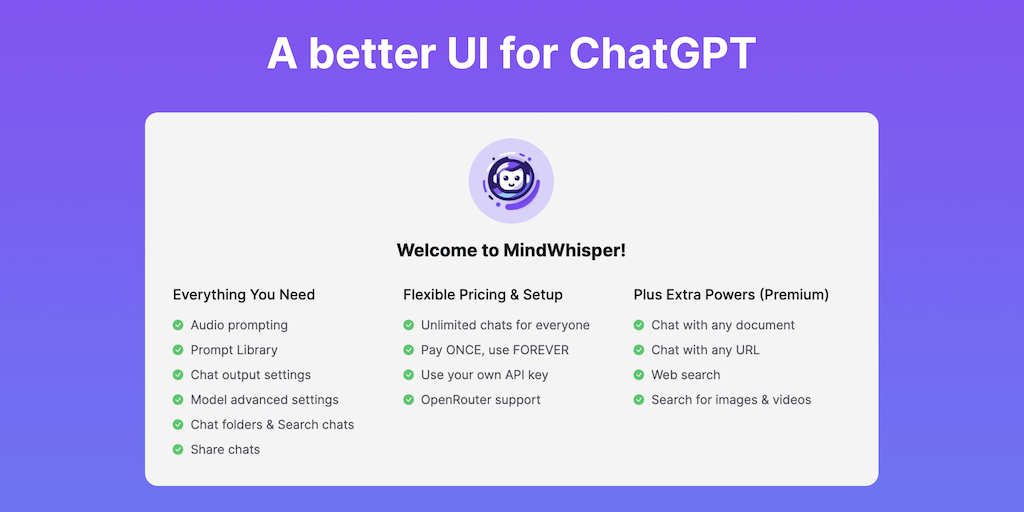 MindWhisper - Giving ChatGPT extra powers for superior chats | Product Hunt