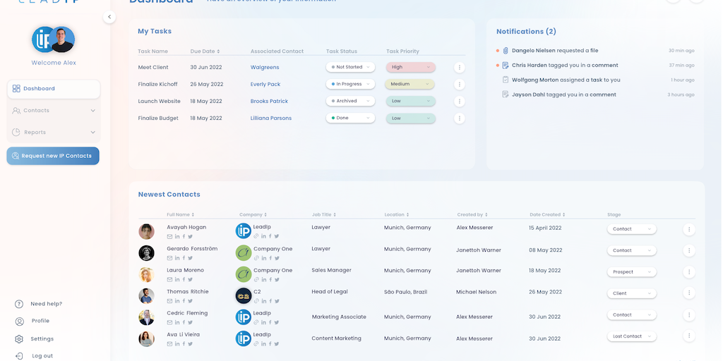 Lead IP Next - Contact and task management platform for the IP industry | Product Hunt