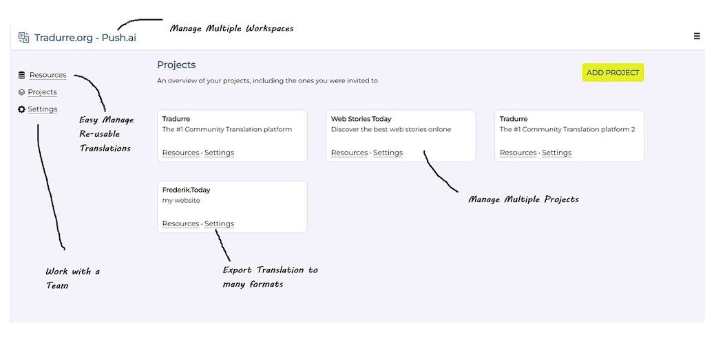 Save Time. Simple to use. Affordable and incredibly powerful. Tradurre offers a feature-rich solution to manage your translation for your apps and websites.