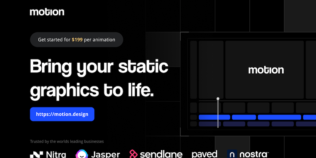 Bring your website graphics to life. Get static illustrations, banners and logos animated for only $199 per asset or grab unlimited service for a fixed price.