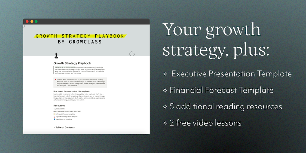 Templates, checklists, forecasts and more → This playbook that has everything you need to build an effective growth strategy.