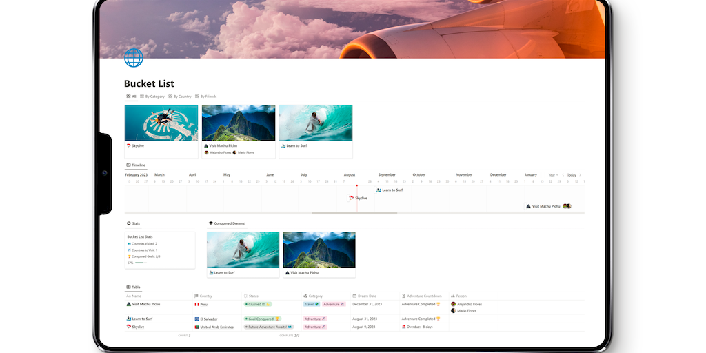 Bucket List for Notion - What have you always wanted to do but never got to? | Product Hunt