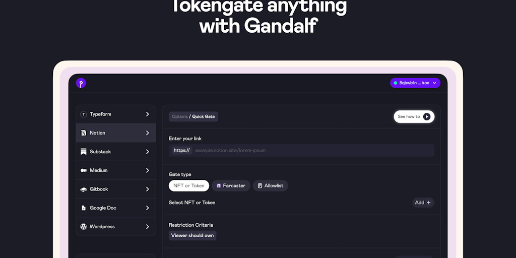 Gandalf - Tokengate anything - Notion, Google Form, Wordpress | Product Hunt