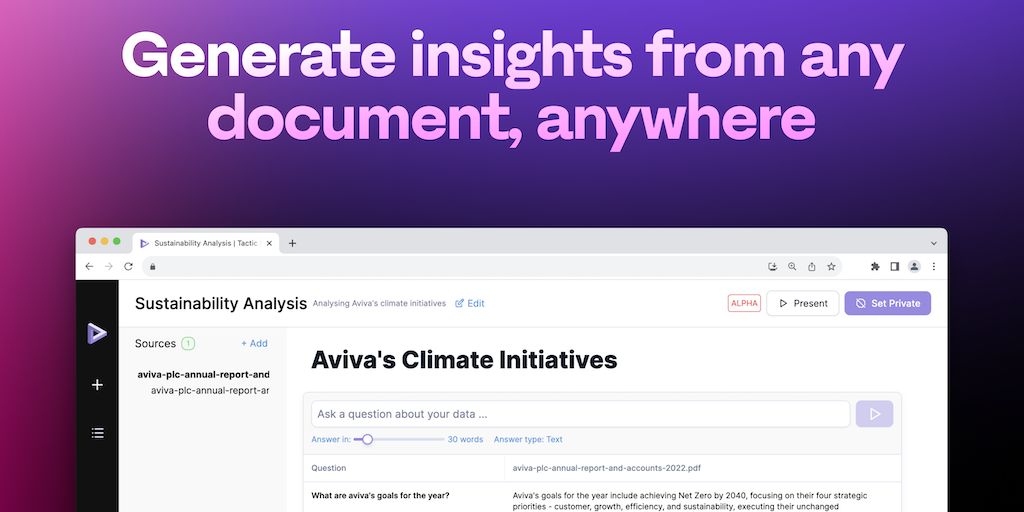 Tactic Generate - Generate reports and analysis from your documents using GPT | Product Hunt