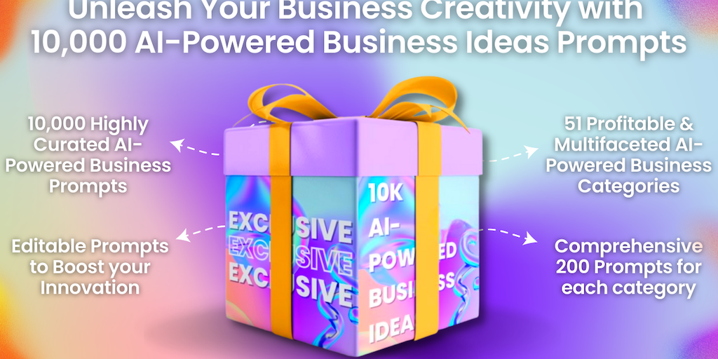 This comprehensive collection of 10,000 AI-Powered Business Ideas Prompts Bundle will allow you to tap into your creativity and generate new AI-Powered Business Ideas without getting stuck 🦄