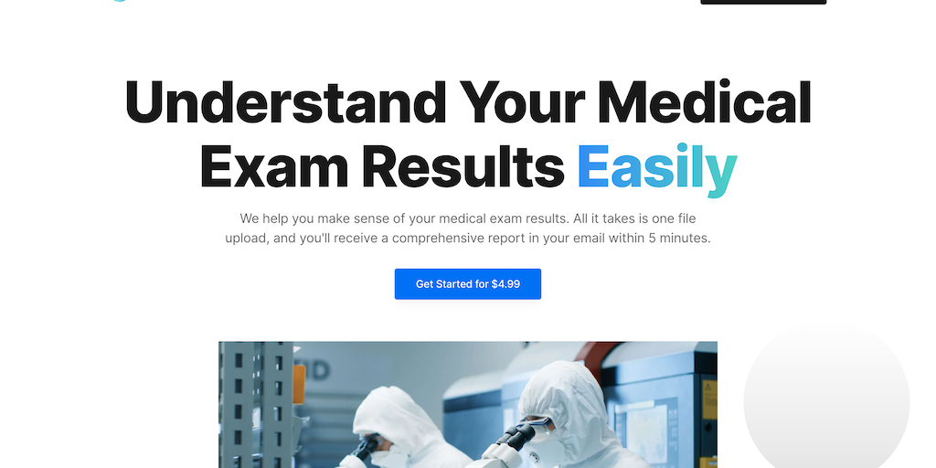 We help you make sense of your medical exam results. All it takes is one file upload, and you'll receive a comprehensive report in your email within 5 minutes.