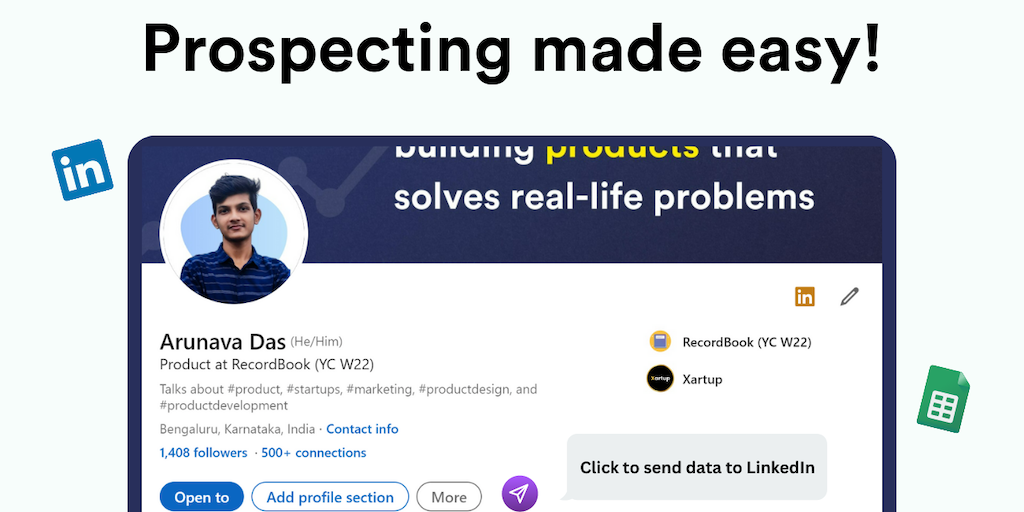 Unleash the power of LinkedIn with LinkedIn2Sheet! Easily extract LinkedIn profile data, perfect for HRs scouting candidates & businesses seeking valuable leads. Save time and effort by transferring d