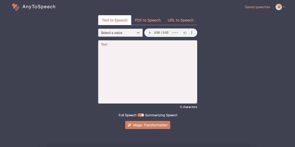 AnyToSpeech - An easy way to convert text, URL or PDF to speech | Product Hunt