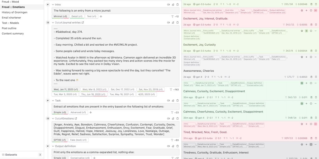 Compose, test, and evaluate one-shot prompts for the OpenAI API and other LLM platforms (Anthropic, Cohere, etc.) that predictably transform input to output. No code required. Full traceability of pro