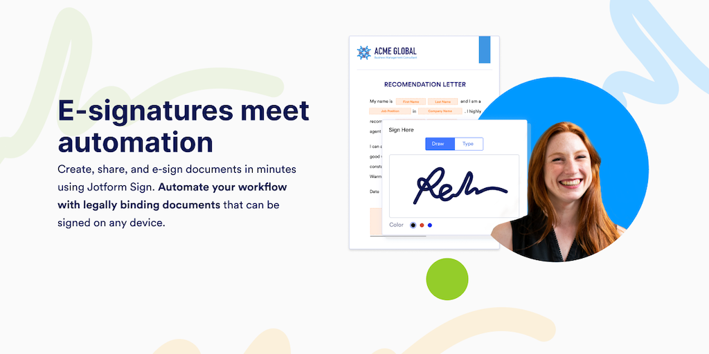 Jotform Sign is the automated e-signature experience designed to streamline your workflow. With field detection, an intuitive builder, and integrations with great automation tools, Jotform Sign is the