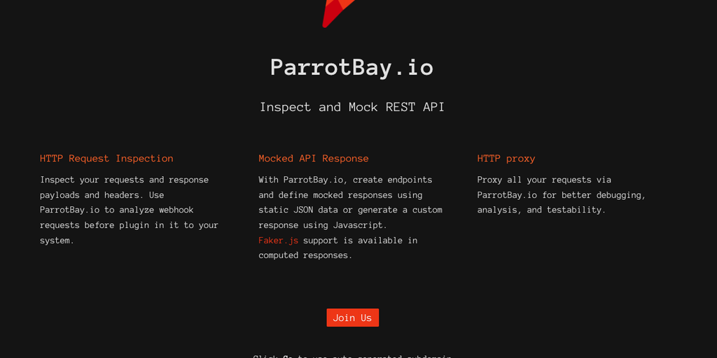 ParrotBay provides a unique URL that you can execute any type of HTTP requests against it. allows you to inspect your HTTP requests, design webhooks, and mimic your entire backend endpoints with stati