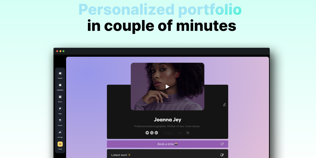 It’s quite simple. Your work + personalized content + video = more deals.✨ Use Biyo to create personalized portfolio with custom content that is tailored to the needs of specific clients, job applicat