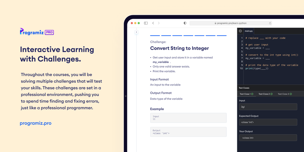 Programiz PRO is an interactive learning platform that allows beginner programmers to learn to code by writing code and solving challenges. Users will create multiple projects to implement coding in t