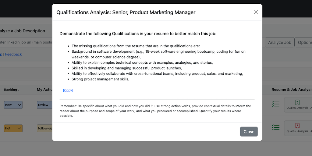 Jobs-Scout: an AI-powered tool that analyzes your resumes and interested job postings. It provides personalized recommendations and tracks job applications. Stand out with the help of AI.