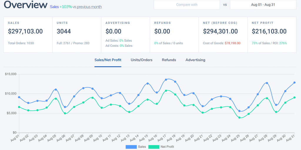 Zillioner helps you manage & grow your AMAZON store (FBA & FBM Sellers). - Real-Time Profit & Sales Metrics - Product Dashboards - Inventory Management - Amazon PPC, Conversion & Profitability - Custo