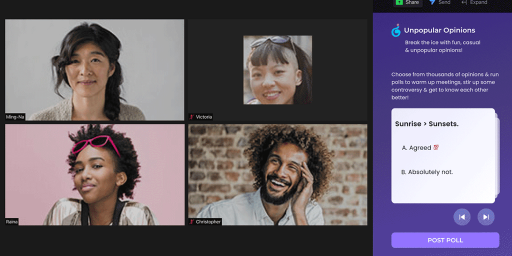 Unpopular Opinion Zoom app brings to your Zoom Meetings a wide range of hotly debated and polarizing viewpoints that are equally as fun to defend, as they are to challenge. With no wrong answers, be r