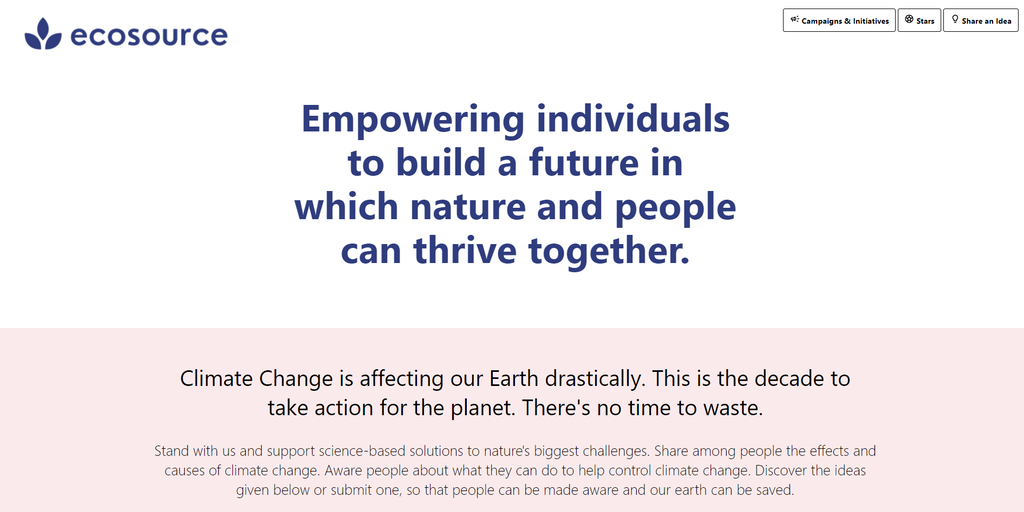 Climate Change is affecting our Earth drastically. This is the decade to take action for the planet. There's no time to waste. Ecosource lets users to share ideas and inspire others to make a differen