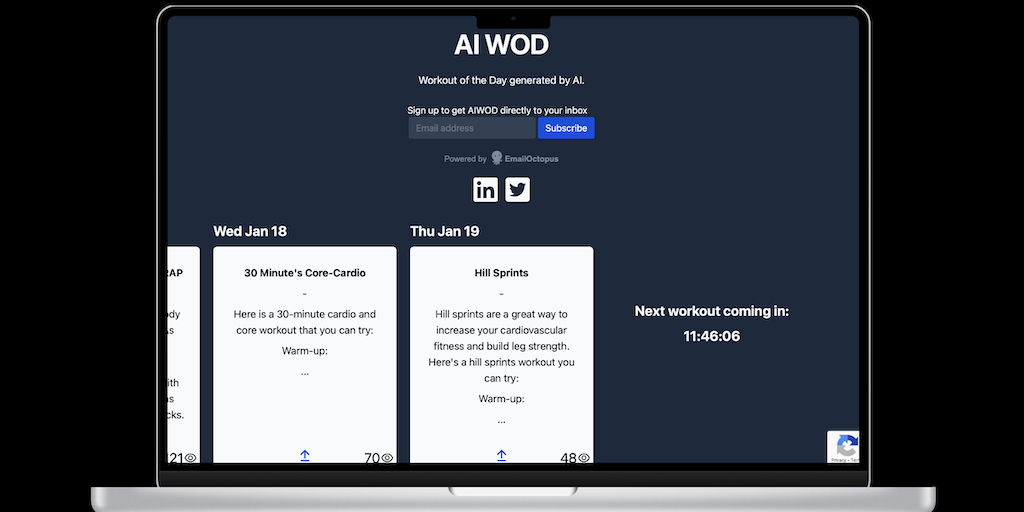 AI WOD uses ChatGPT to generate an interesting and effective daily workout that anyone can do from home.