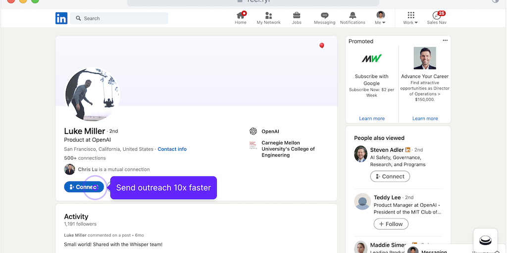 An easy way to network on LinkedIn. Send personalized outreach messages with AI to boost your job application response rates.