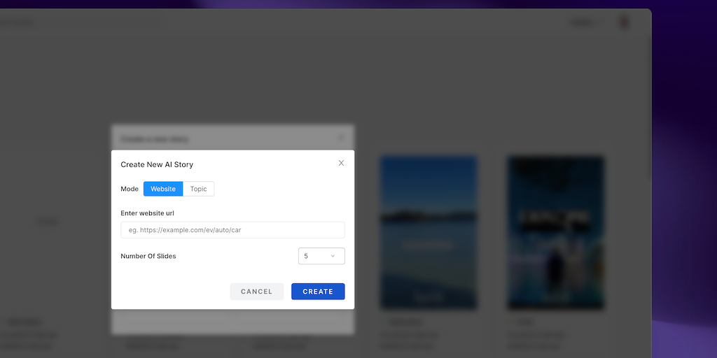 Unleash your creativity with MakeStories AI Story Builder. Just provide a URL or topic, and our AI generates the slides. Add your media, hit publish, and watch your story come to life in minutes!