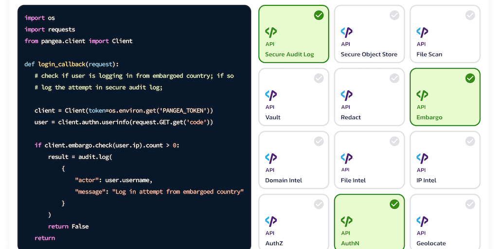 When your developer captures app activity in the Pangea Secure Audit Log API, you’ll have full confidence that your log data was cryptographically secured with verifiable signatures, and strict access