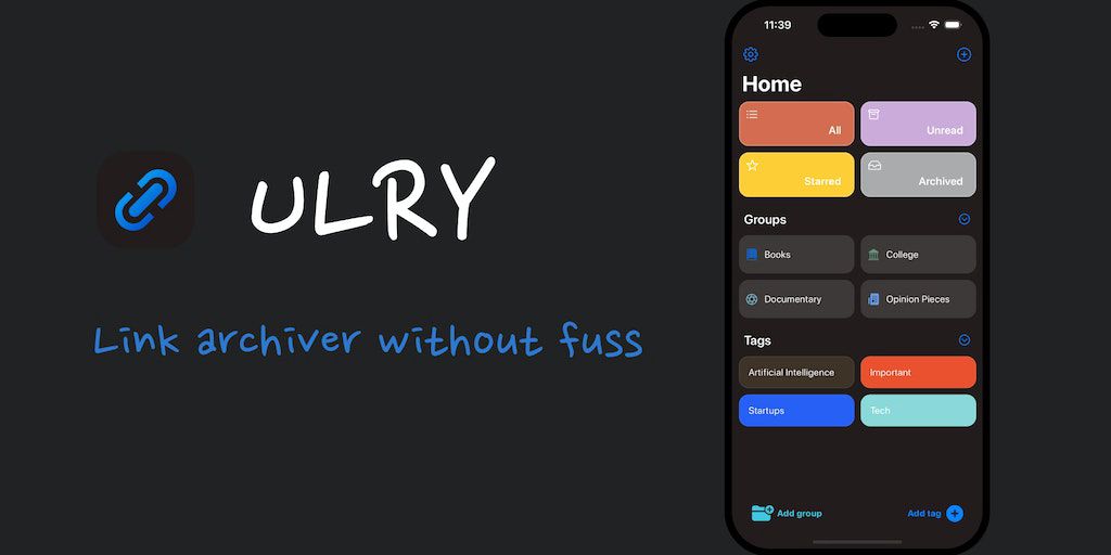 Ulry is a link archiver that allows you to save and organise your links in one convenient place with the help of groups and tags that you can create and customise as you wish. Ulry's search feature wi