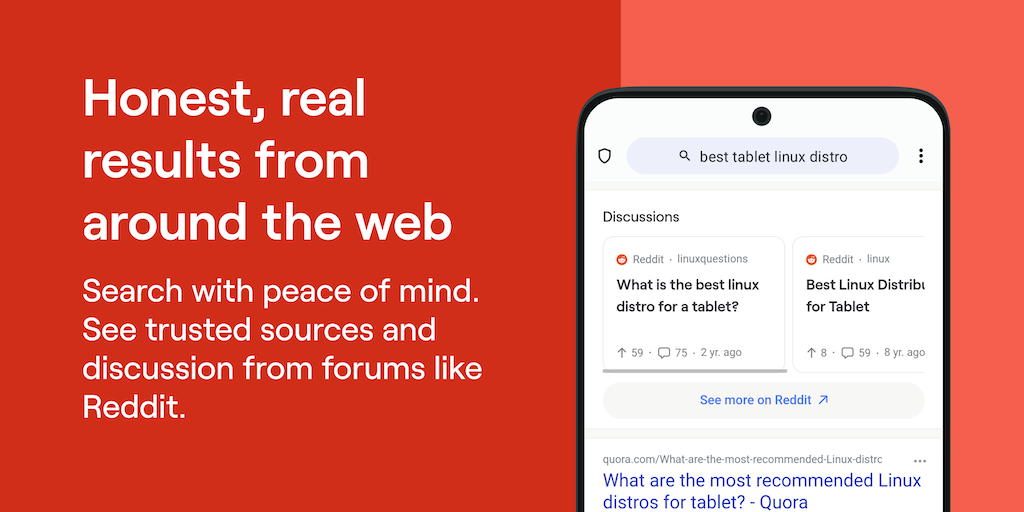 Our ad-free app gives you: • Quick, immersive results served by an independent search stack • Sources you want, nothing less • Search with FastTap (skip the search results entirely) • Community forum