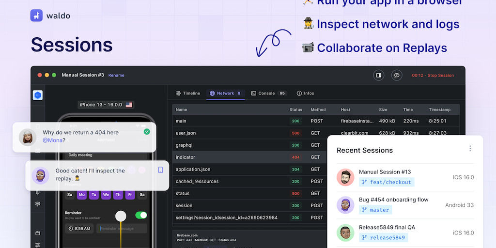 Waldo Sessions is the missing collaborative tool for mobile teams: 🏃♀️ Run your pre-release build on any device right from the browser 🕵️ Inspect and annotate in context 🔗 Share the re