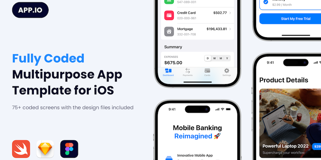 App.io is a fully coded multipurpose mobile app template for iOS that was built to help you supercharge your next iOS mobile app project. It offers an extensive variety of fully coded screens across 1