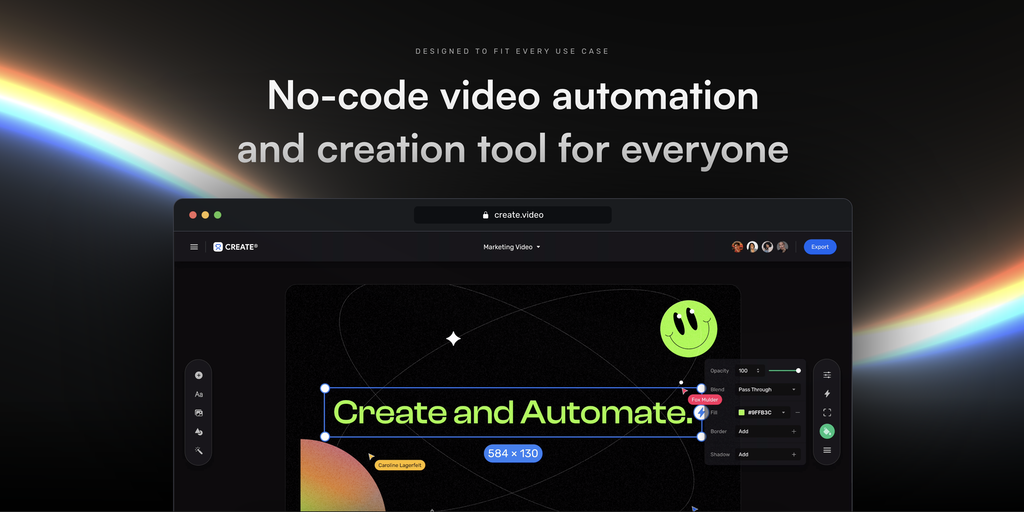 No-code video automation and creation tool for everyone. Automate your video without code. Simple edit, multi-layer timeline, auto-created subtitle, fast like an F1 car, Figma import.