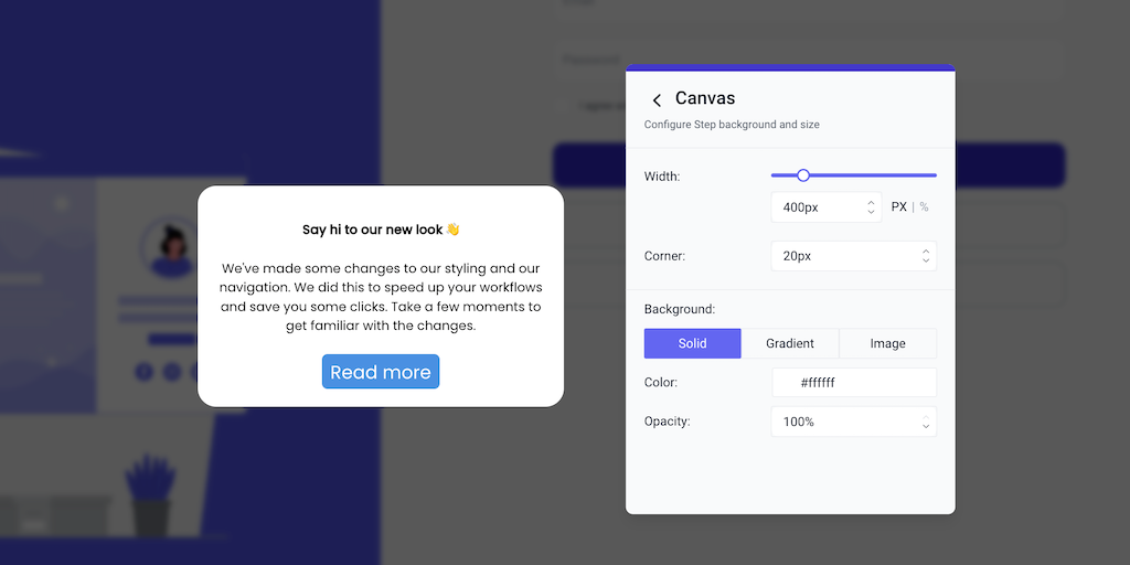 Build beautiful, on-brand product onboarding tours with our no code modal designer, and journey builder. Target specific users and trigger the campaigns based on complex logic - no engineering require