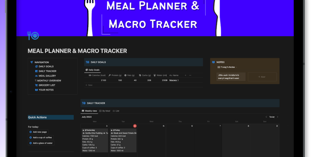Meal Planner & Macro Tracker - Notion template for tracking your calories & macros | Product Hunt