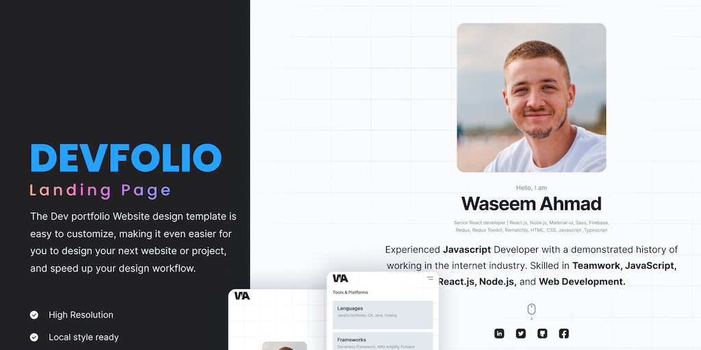 DevFolio - Developer's Portfolio Landing Page Template | Product Hunt
