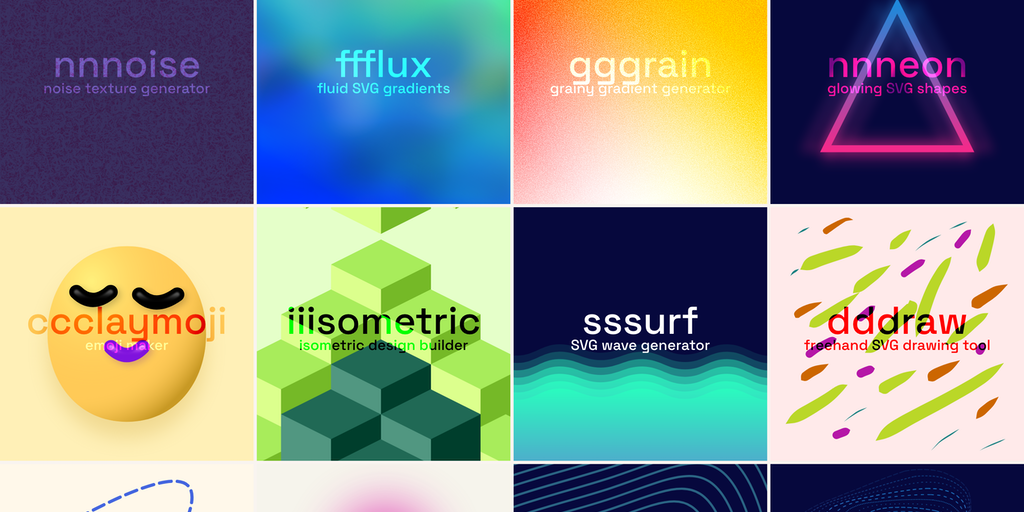 fffuel is a collection of SVG generators and color tools to help make your designs more 🎉 fun, 🎨 colorful, 🍐 organic and 🪄 magical.