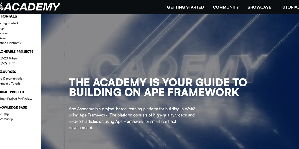 Ape Academy is a project-based learning platform for building in Web3 using Ape Framework. ✨KEY FEATURES✨ 🛠Step-by-Step Tutorials in 🐍 Vyper & Python 🎥High Quality Video Content 🖼Show off with Ape Sho