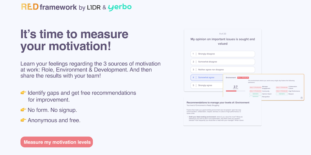 LIDR RED Framework - Measure your motivation levels at work & get recommendations | Product Hunt