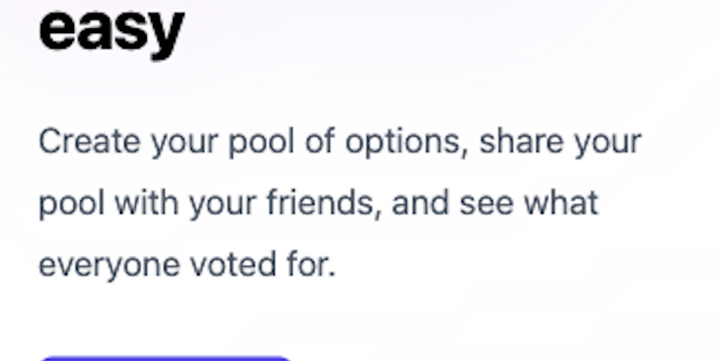 Group planning made easy. Create a pool of options, share with your friends, and let everyone vote to see what the most popular option is.