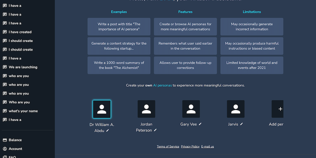 Create personalized AI personas for specific applications. Choose from templates of introductory statements and context and avoid redefining the context of the conversation. Brainstorm, create strateg
